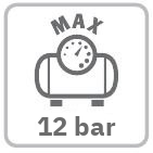 - Maximálny tlak je 12 bar pri výkone 1,5 kW.