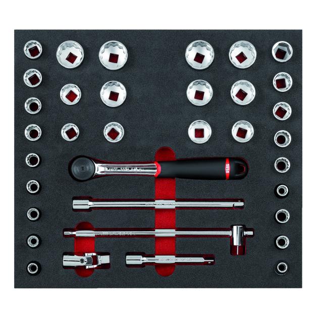 Gola sada 1/2" s metrickými aj palcovými nástavcami v penovom nosiči, 35ks, rozmer 415x376x45 - formát XL