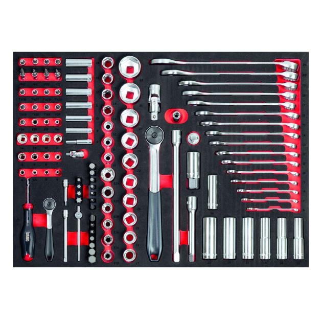 Kombinovaná Gola sada 1/4"-1/2" s kľúčami v penovom nosiči, 116ks, rozmer 565x415x45 - formát XXL