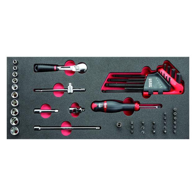 Gola sada 1/4" v penovom nosiči + bity + sada imbusových kľúčov, 46ks, rozmer 415x188x45 - formát L