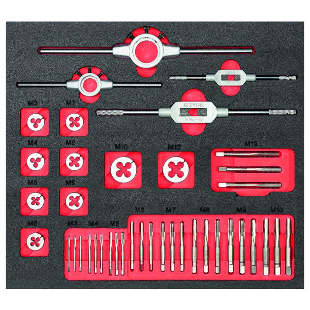 Sada ručných závitníkov a očiek v penovom nosiči, rozmer 415x376x45 - formát XL