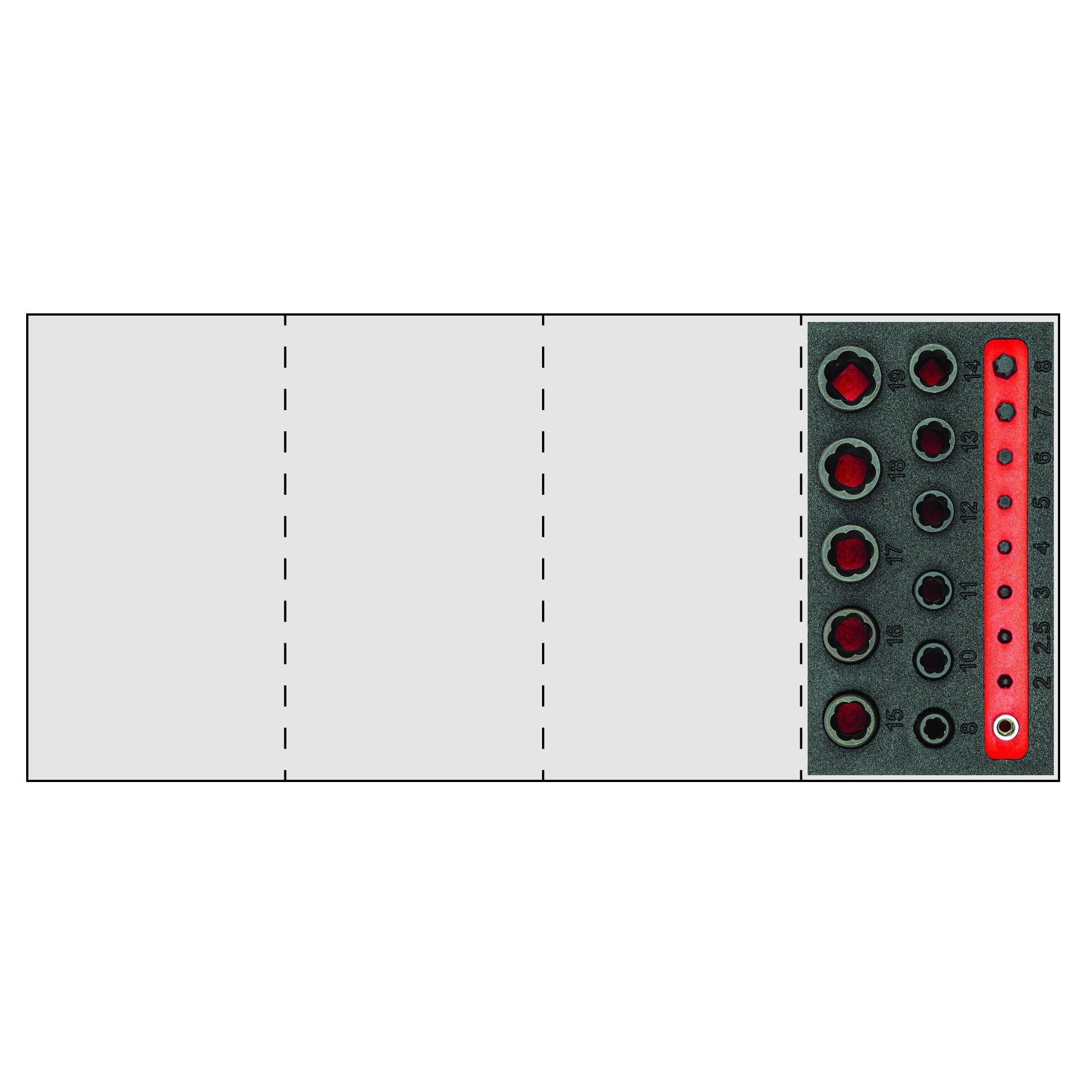 Sada 20 špeciálnych Gola nástavcov na poškodené skrutky a matice, penovom nosiči, rozmer 104x188x45 - formát S
