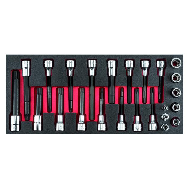 Sada 24 Gola nástavcov 1/4"-3/8"-1/2" v penovom nosiči, rozmer 415x188x45 - formát L
