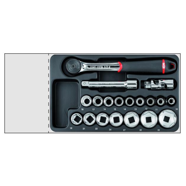 Gola-sada 1/2" v plastovom (ABS) nosiči, 19ks, rozmer 311x188x45mm - formát M