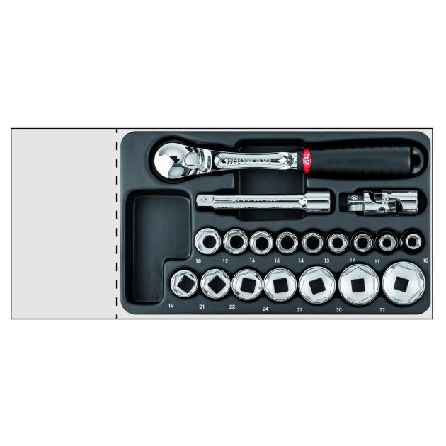 Gola-sada 1/2" v plastovom (ABS) nosiči, 19ks, rozmer 311x188x45mm - formát M