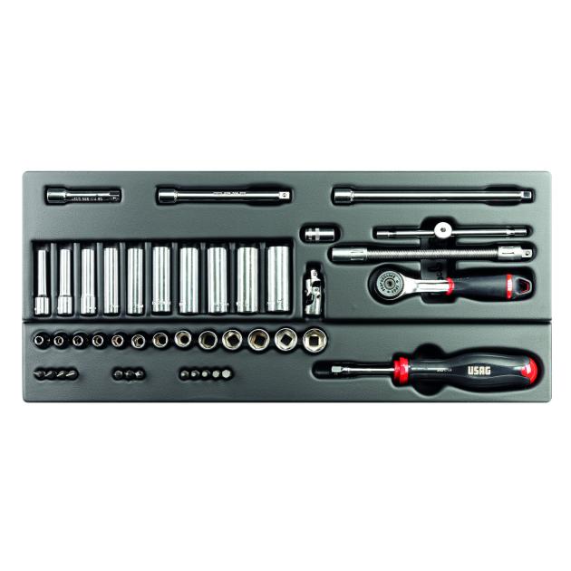 Gola-sada 1/4" v plastovom (ABS) nosiči + bity, 44ks, rozmer 415x188x45mm - formát L