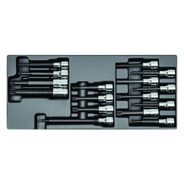 Sada 16 predĺžených 1/2" gola nástavcov v plastovom (ABS) nosiči, rozmer 188x415x45mm - formát L