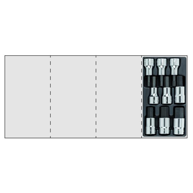 Sada 9 ks 1/2" gola nástavcov v plastovom (ABS) nosiči, rozmer 104x188x45mm - formát S