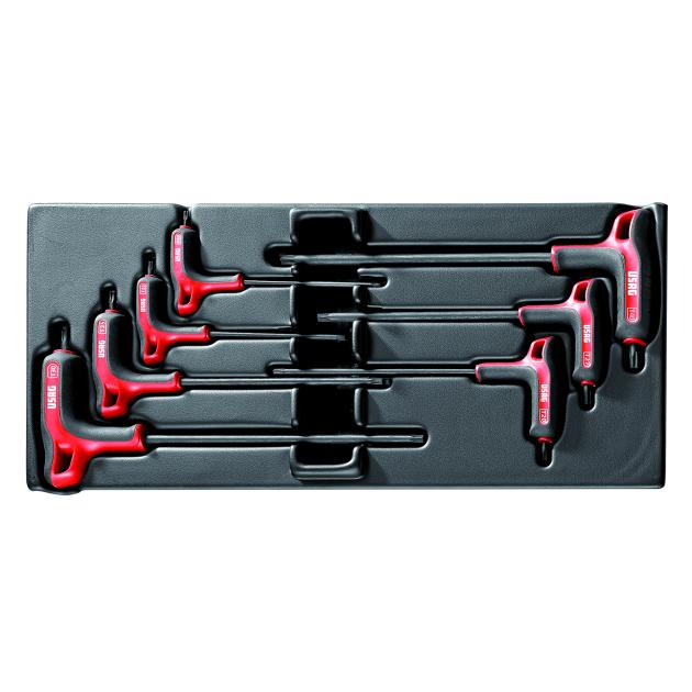 Sada imbusových T-kľúčov s guličkou v plastovom (ABS) nosiči, 7ks, rozmer 415x188x45mm - formát L