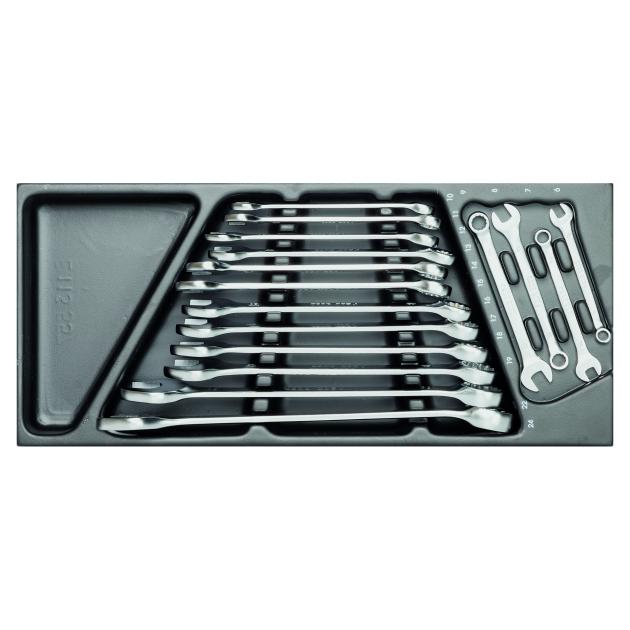 Sada očko-vidlicových kľúčov v plastovom (ABS) nosiči, 16ks, rozmer 415x188x45mm - formát L